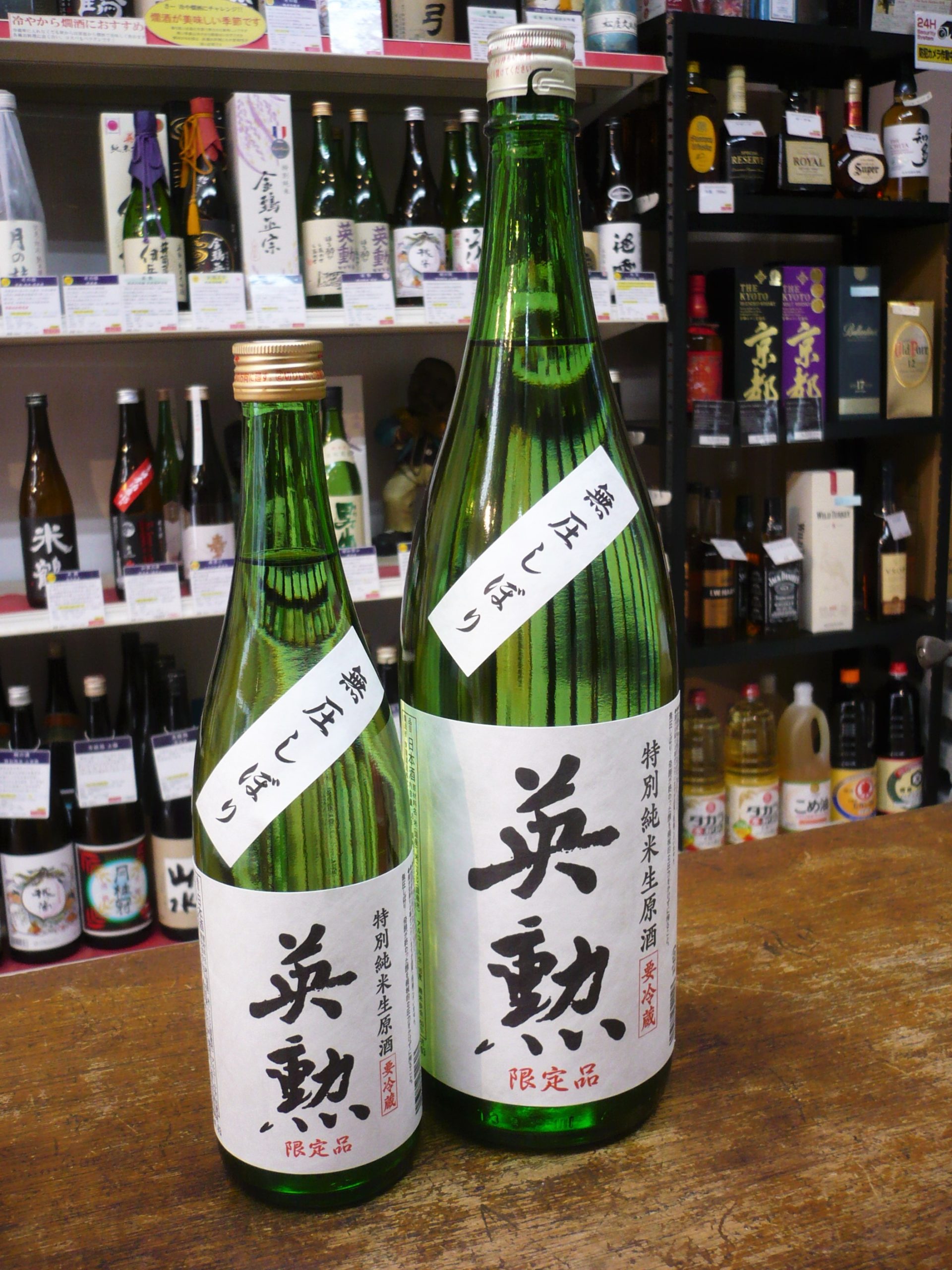 販売店限定の英勲 吟醸酒なみの60%まで精白し醸した 特別純米酒を、機械的圧力をかけず搾った「無圧搾り」。 火入れ、割り水をせず、濾過をせず、搾ったまま瓶詰しました。